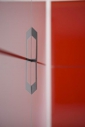 Модульные системы для спальни итальянской фабрики SMA. Шкаф с 2 дверями Цвет: матовый глянцевый лакированный красный/белый Ручки: хром Размер: Длина 292 см, глубина 62 см, высота 254 см.