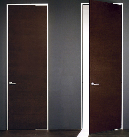 Распашная дверь Longhi (Италия). Высота 270 см, ширина 60/70/80/90 см. Возможно изготовление по индивидуальным размерам. Обналичка (по ширине): стандартная, тонкая (на фото), «невидимая». Обналичка (по материалу): алюминий, темно-коричневый алюминий, шпон по алюминию. Полотно: шпон светлого, серого, шоколадного (на фото) дуба, вишни, ореха, зебрано. Расчет цены — индивидуальный.