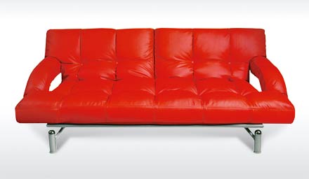Спинка дивана разделена на две части, которые фиксируются в пяти положениях. В основе дивана находится металлический каркас, матрац из латекса с полиуретаном, модель обладает функцией подъема и опускания подлокотников при раскладывании.