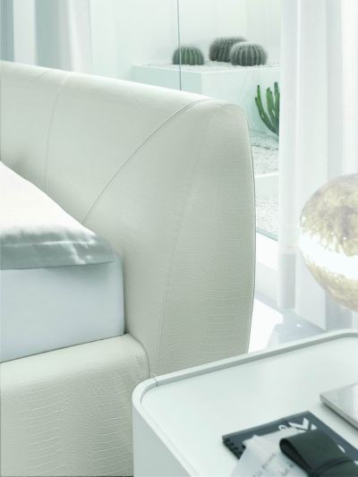 Кровать двуспальная STRIP Размер: 189*231*h85 ( матрац 160*200 ) Материал: экокожа – цвет белый Цена: 84 280 руб. Варианты материалов: экокожа 10 цветов, натуральная кожа 12 цветов, хлопчатая ткань 12 цветов, льняная ткань 11 цветов. Возможные размеры по матрацу: 90*200, 120*200, 140*200, 150*200, 160*200, 180*200, 200*200 По желанию заказчика каркас кровати может быть снабжен ящиком для белья с подъемным механизмом газ-лифт или горизонтальным механическим подъемником Тумбочка прикроватная DOMINO plus Размер 51*50*h46 Материал: шпон дуба Tobacco, крышка- матовое белое стекло , Цена: 28 400 руб. Варианты материалов: шпон дуба Tobacco, шпон белого ясеня, лакированный ясень 13 цветов, лакированный MDF 14 цветов. Крышка тумбы: возможно изготовление из стекла 26 цветов. По желанию заказчика устанавливается подсветка между фасадами ящиков.