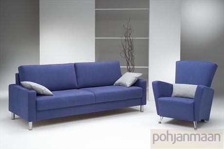 Модель «Easy» финской фабрики «Pohjanmaan».Размеры: 3-местный диван — 214×90хh86, 2-местный диван — 134×90хh86, кресло — 79×90хh86 см (на фото вместе с диваном Easy показано кресло Madeleine, кресло Easy по дизайну аналогично дивану Easy). 3-местный диван можно комплектовать спальным механизмом, в этом случае он выполняется только в ткани. На выбор есть 4 варианта подлокотников различной толщины, размеры диванов даны с учетом самых узких подлокотников (на фото). На заказ модель «Easy» может быть выполнена в одном из более чем 50 вариантов кожи, а также в ткани, фактуру и цвет которой Вы можете подобрать в салоне.